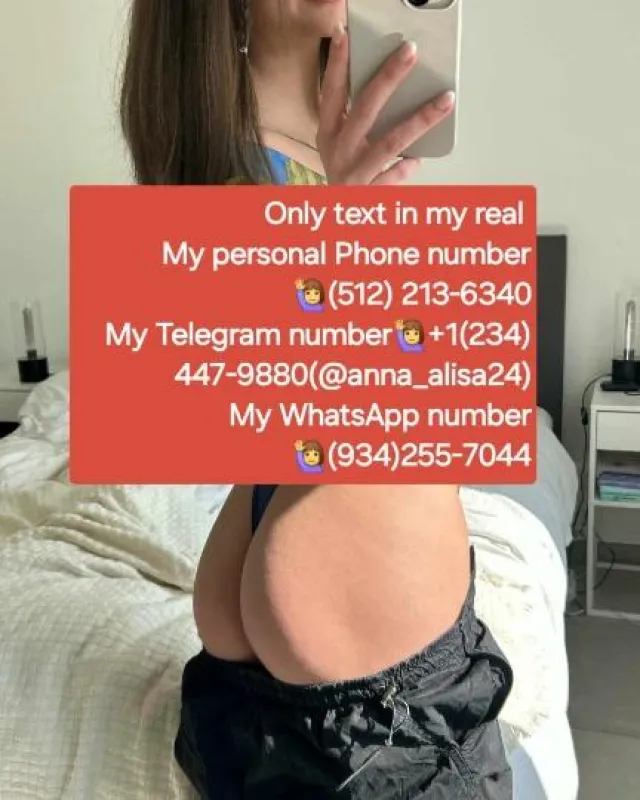 😍I'm available for incall, outcall and carplay. You will get the best bbj all service💯 ◕👉Bbj, ✔oral, ✔Anal ◕👉Bare back sex ◕👉I sell photos and videos.✔ ◕👉Raw, ✔Dogy style sex ◕👉Bbw,✔69 position, ✔420 freindly, ✔Car Fun 💕Gfe ◕👉Nuru massage ✔Kissing ✔ Penis massage ✔ Sucking penis ◕👉Selling Any picture and video ◕👉Not a cop, No drama n no games / bs I'm serious for sex💯 ◕👉Special service for old guys◕👉◕👉I'm also looking for regular playmate and Serious relationship◕👉 ◕👉I'm available text me my social media 1st reply ✅ 👉Please only text me in my right telegram for aboiding BS ,Use my right user telegram number or user name or QR name 👉Text me on my My real Telegram 👉@alisa_anna24👉 My real Telegram link👉https://t.me/anna_alisa24 🌹My real Telegram number👉(234) 447-9 880 🌹My WhatsApp number👉(934) 255- 7 044 ✅Text My New phone number👉(512)213-6 340✅ ◕👉Same price and same location for regularplamate ✅ ◕👉New clients text me for more info◕👉